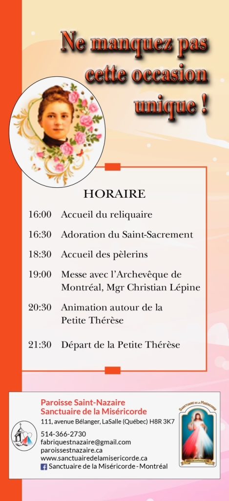 Grand reliquaire de Ste-Thérèse de L’Enfant-Jésus à la paroisse
